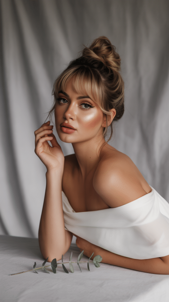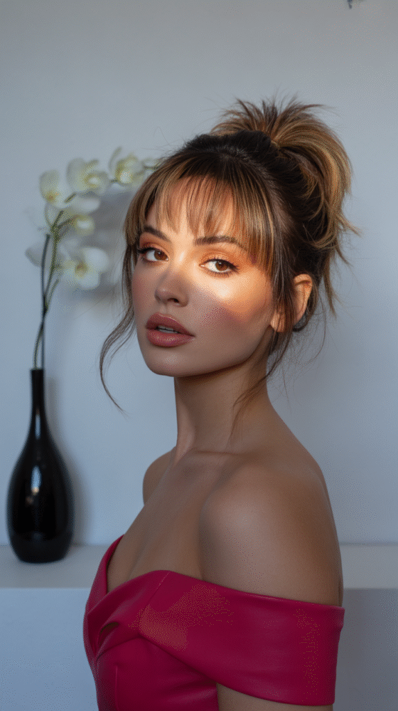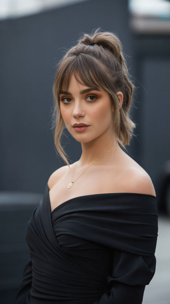 This hairstyle works for office meetings, romantic dinners, or casual outings. You can style messy buns curtain bangs at weddings, festivals, or even vacations, making it one of the most flexible looks in 2025.